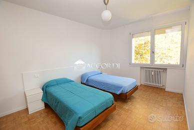 La zona notte è separata da un piccolo corridoio che conduce a due camere matrimoniali e ad un bagno finestrato con attacco lavatrice.