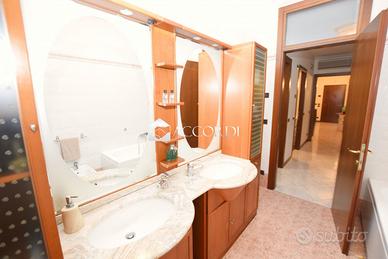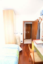 La zona notte comprende una camera matrimoniale dotata di bagno privato finestrato con box doccia e affaccio di un secondo terrazzo, una camera singola, una stanza aggiuntiva che può essere utilizzata come ulteriore camera o come studio, oltre ad un pratico ripostiglio con attacco per la lavatrice. Completa la zona notte un secondo bagno, dotato di doppio lavandino e vasca idromassaggio.