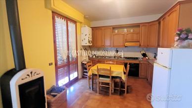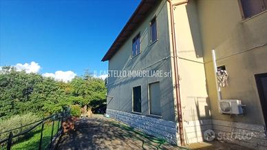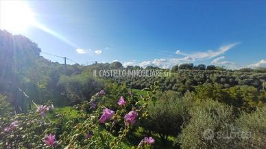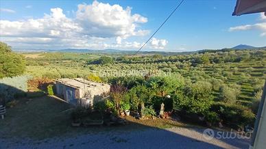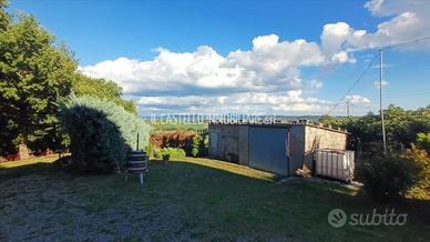 CHIANCIANO Terme (SI), alla quota di 366 m s.l.m. in campagna ed a 2,5 km dal centro, vendesi terratetto (due piani + soffitta), con due lati liberi (Nord-Est) e due lati affiancati, accesso indipendente e costituito da appartamento al primo piano, ampia autorimessa al piano terra con cantine sane uso laboratorio; intorno circa 6000 mq di terreno condiviso al 50% con il vicino con annessi agricoli. Posizione molto panoramica e di facile accesso dal paese (solo breve tratto di strada bianca). La superficie catastale complessiva commerciale dell'immobile è di circa mq 209 (in considerazione dell'appartamento e pertinenze dirette di mq 138, dell'autorimessa di mq 63 e degli annessi / magazzini di mq 155).
