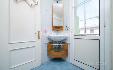 Al piano terra troviamo una cucina separata, un soggiorno accogliente e un bagno finestrato con vasca.