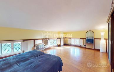 Salendo al secondo piano, troviamo una mansarda spaziosa e luminosa, con soffitti alti e ampie finestre: un ambiente accogliente e versatile dove è possibile ricavare altre due camere matrimoniali. Anche qui è già presente un bagno completo.