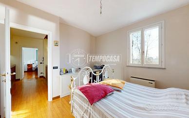 All'esterno, la proprietà include un garage doppio di circa 40 mq al piano terra e un'ampia area verde con giardino comune alla porzione adiacente. Su richiesta, è possibile valutare un frazionamento per creare giardini privati separati.