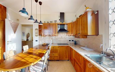 Proseguendo, una cucina abitabile con porta finestra che permette l'accesso diretto all'esterno -- perfetta per vivere al meglio gli spazi aperti -- e un primo bagno a completare il piano.