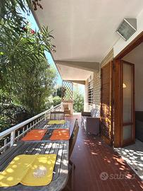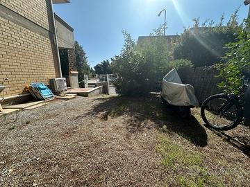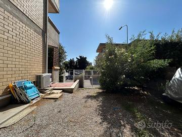 Tramite l'ampio giardino si accede al soggiorno con angolo cottura, 2 camere, bagno.