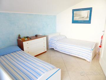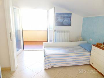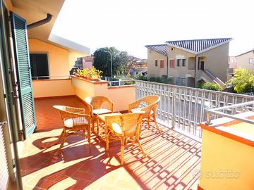 V47 Pratoranieri: attico completamente ristrutturato al piano primo di una grande villa. Composto da sala, cucina abitabile, 3 camere, doppi servizi, ripostiglio, 4 terrazzi, vista mare Al piano sotto taverna mq74 con camera, bagno angolo cottura e camino. Giardino privato e due posti auto. Pari al nuovo, climatizzato ed arredamento nuovo. Classe energetica: G ipe: 175.00 tel.: