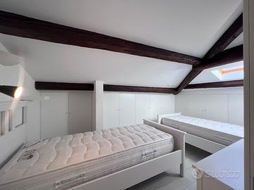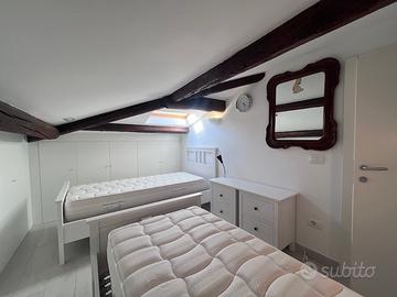 Salendo al livello superiore mansardato, troviamo una terza camera, ben vivibile e luminosa, e un secondo bagno.