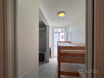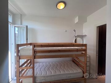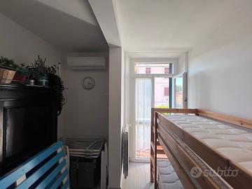 La zona notte accoglie una spaziosa camera matrimoniale, uno studio/cameretta, un balcone perfetto per godersi la brezza marina e un primo bagno completo.