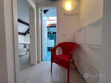 L'ingresso all'appartamento avviene tramite una terrazza privata abitabile, ideale per godersi momenti di relax all'aperto.