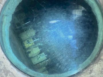Gli altri lati sono contro terra, garantendo buon isolamento e temperatura costante. Inoltre, è presente una cantina sotto pavimento con accesso dalla sala, visibile da una vetrata oblò a pavimento.