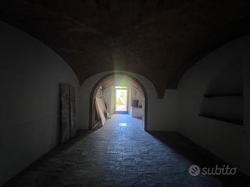 L'accesso avviene tramite ingresso dal centro del paese, da qui si scende al piano seminterrato dove si sviluppa l'intero fondo.