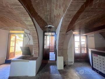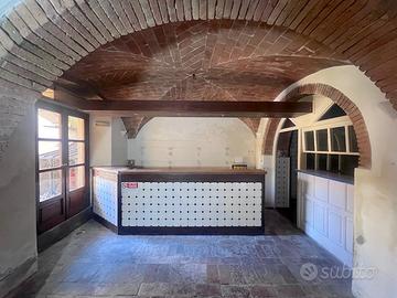 Gli ambienti, caratterizzati da soffitti a volte in mattoni e in ottime condizioni, offrono fascino e autenticità. Il locale prende luce e aria dal lato sud-ovest, dove due portefinestre danno anche accesso diretto alla corte privata, uno spazio ideale per tavoli all'aperto o area relax.