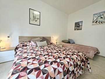 La proprietà si compone di: ingresso luminoso e accogliente, ampia camera matrimoniale con spazio sufficiente per un armadio e una zona di studio, camerina ideale per un figlio o per un ospite, soggiorno con angolo cottura con uscita sul terrazzo soleggiato, ideale per rilassarsi, comodo ripostiglio e ampio bagno con doccia molto spaziosa, finestrato, dotato di tutti i comfort. Il terrazzo,dotato di comodo lavandino esterno, si affaccia sul giardino condominiale come anche tutte le camere dell'immobile.