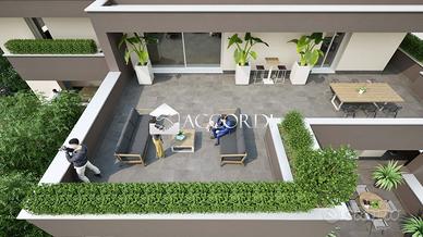Presentiamo appartamento quadrilocale al piano primo servito da ascensore, composto da ampio ingresso soggiorno con angolo cottura di circa 40mq che apre su splendido terrazzo abitabile, dove è possibile anche pranzare/cenare all'aperto; disimpegno sul quale si affacciano il ripostiglio, due bagni e tre camere da letto di cui due matrimoniali, matrimoniali che insistono su un secondo comodo terrazzo più piccolo.