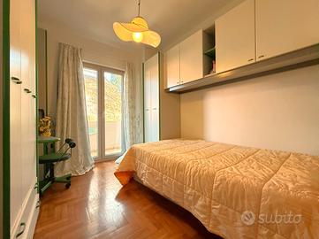 sala pranzo soggiorno con affaccio sul balcone, uno studio/camera, disimpegno, un wc con antibagno, un bagno, un ripostiglio e tre camere da letto.