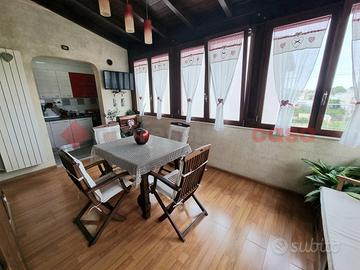 L'immobile, ben rifinito, offre un ambiente accogliente e funzionale, con una distribuzione ottimale degli spazi. L'appartamento è composto da ingresso in ampio disimpegno, due spaziose camere da letto, bagno con doccia moderno e funzionale, spazioso salone che garantisce una zona giorno spaziosa e luminosa e un pratico cucinino già arredato e completo di elettrodomestici. Un ulteriore punto di forza dell'immobile è la serra solare, che crea un'atmosfera accogliente e piacevole, perfetta per trascorrere piacevoli momenti di relax.