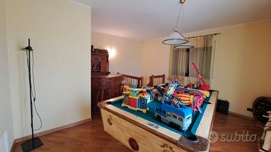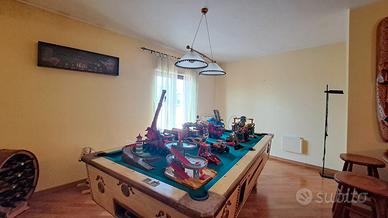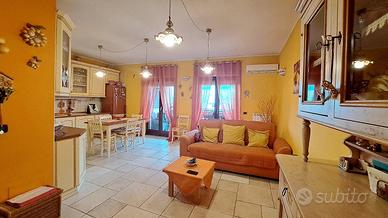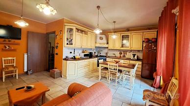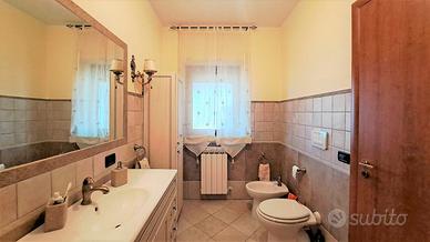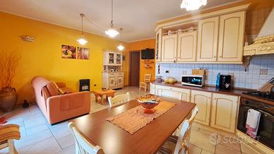 Si tratta di una particolare soluzione composta da: ingresso in ampio salone dotato di camino e stufa a pellet, cucina abitabile, disimpegno, due camere da letto e due bagni.