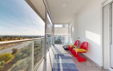 L'appartamento è sito al settimo piano di un edificio costruito nel 2023 in classe energetica A4, gode di doppia esposizione ed è così disposto: ingresso in disimpegno, luminoso open space, rifinito bagno finestrato con sanitari sospesi , box doccia in cristallo e rivestimenti in grès porcellanato ed accogliente camera da letto matrimoniale con spaziosa cabina armadio.