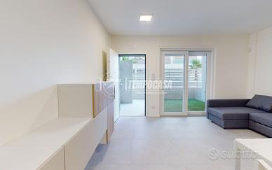 L'immobile è sito al PIANO TERRA ed è così composto: ingresso in OPEN- SPACE soggiorno/ cucina, bagno con doccia walk in e sanitari sospesi, camera da letto, un comodo ripostiglio ed un lavabo esterno.