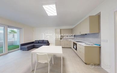 L'immobile è attualmente ARREDATO dotato di ampie vetrate e area esterna privata, di pavimentazione in grès porcellanato, infissi in TRIPLO vetro, impianto di riscaldamento canalizzato caldo/ freddo, climatizzatori e porta blindata e posto auto.