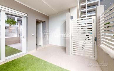 L'immobile è sito al PIANO TERRA ed è così composto: ingresso in OPEN- SPACE soggiorno/ cucina, bagno con doccia walk in e sanitari sospesi, camera da letto, un comodo ripostiglio ed un lavabo esterno.