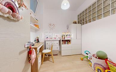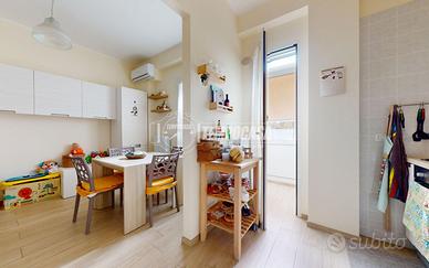 Entrando, saremo subito accolti dalla zona living, il cuore della casa, che crea immediatamente un'atmosfera calda e accogliente; sulla destra troveremo la spaziosa cucina con affaccio su una comodissima veranda ed il rifinito bagno dotato di box doccia in cristallo e sanitari sospesi; proseguendo a sinistra della porta d'ingresso, accederemo alla zona notte, composta dalla cameretta e dalla camera da letto padronale esposta su di un ampio balcone.