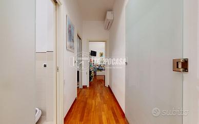 L'appartamento è dotato di riscaldamento centralizzato con elementi in ghisa, gode di tripla esposizione e tra le rifiniture troviamo: pavimento in parquet Doussie Africa, porta blindata, impianto elettrico settoriale, infissi in pvc con vetro camera, zanzariere, cancellate di protezione, tapparelle elettriche e climatizzatori caldo/freddo.