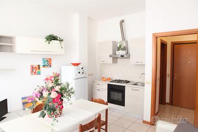Appartamento situato in palazzina recentemente ristrutturata, composto da cucina-soggiorno con divano letto, camera matrimoniale, cameretta con letto a castello, servizio con box doccia e lavatrice, ripostiglio, terrazzo che collega camera e cucina, posto auto riservato. Vicino al centro citta; molto buoni i servizi x i collegamenti.