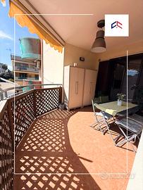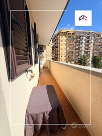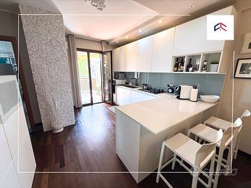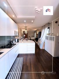 Un ampio ingresso salone che affaccia su due balconi spaziosi perfetti per momenti di relax, con angolo cottura a vista