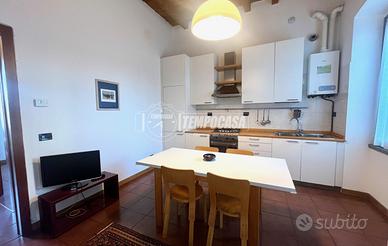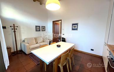 L'abitazione conserva tutto il carattere originale dello stabile, grazie ai pavimenti in cotto e alle travi a vista presenti in tutti gli ambienti, che donano calore e autenticità agli spazi.