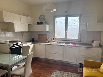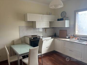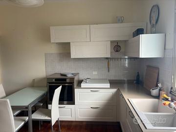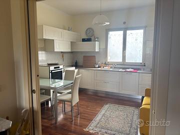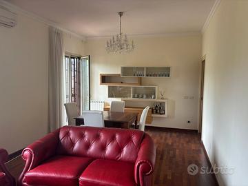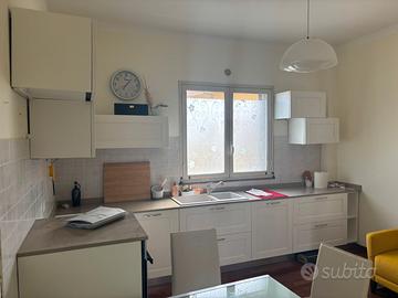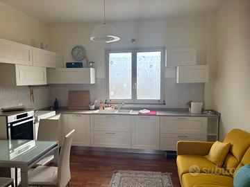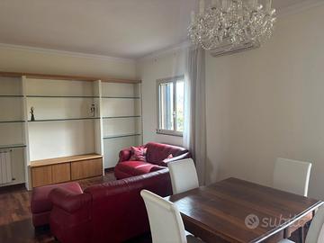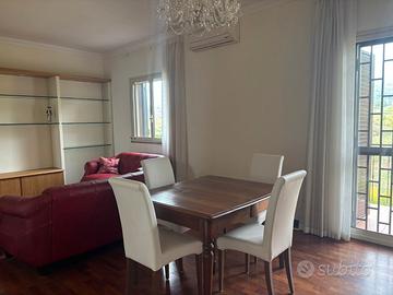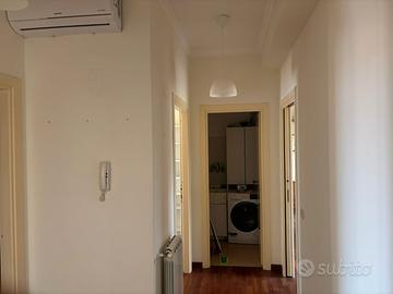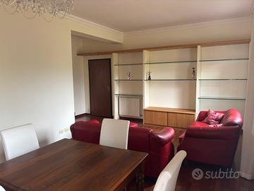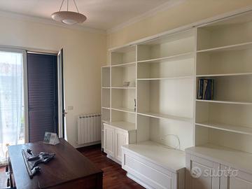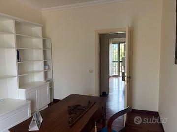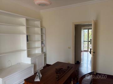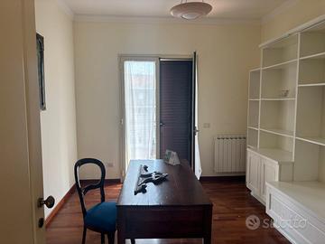 All'ingresso si viene accolti da un luminoso salone che affaccia su uno dei due balconi, perfetto per creare una zona living accogliente e spaziosa. La cucina, anch'essa molto comoda e funzionale, viene lasciata arredata con una cucina su misura di ottima fattura. La zona giorno è completata da uno sgabuzzino utile come ripostiglio e da uno studio ideale per chi lavora da casa o desidera uno spazio dedicato. La zona notte è composta da una camera, un bagno con doccia, e dalla camera da letto matrimoniale che rappresenta un vero e proprio ambiente padronale: dispone infatti di bagno in camera con vasca, cabina armadio e affaccio sul secondo balcone.
