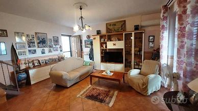 In contesto residenziale e signorile, ed esattamente in Via Francesco D'Assisi, della frazione Carrubba di Riposto, all'interno di un complesso edilizio di recente costruzione, proponiamo la vendita di un grazioso appartavilla, con ingresso indipendente, di 3 vani con superficie catastale di 85 mq circa, su due livelli, così disimpegnato: primo livello con ingresso su ampia zona living cucina-soggiorno di circa 35 mq, servizio di rappresentanza con vasca oltre comodo angolo cottura-lavanderia esterno in veranda; al secondo livello invece al quale vi si accede mediante un'elegante scala interna, è disimpegnata la zona notte con 1 camera da letto matrimoniale ed una camera singola entrambe mansardate ma comunque vivibili. L'immobile, che si presenta in ottime condizioni interne, dispone di infissi in legno-vetrocamera e di impianto di riscaldamento autonomo; balconato sulla zona living gode di una buona luminosità ed è caratterizzato da una gradevole vista mare/Etna.