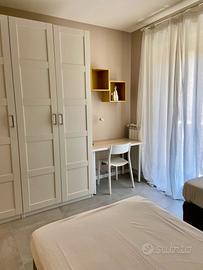La seconda di circa 18mq ha accesso al terrazzino con affaccio interno ed è dotata anch'essa di aria condizionata, due letti singoli, con materassi nuovi di qualità, che se avvicinati diventano un letto matrimoniale, due scrivanie ed ampi armadi e scaffalature.