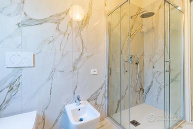 L'appartamento si distingue per le finiture di alto livello e un bagno completamente arredato, pensato con uno stile contemporaneo e materiali di pregio che conferiscono un'impronta raffinata e funzionale a ogni ambiente.