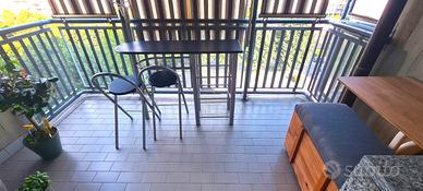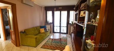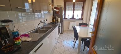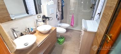 Un ampio disimpegno divide la zona giorno dalla zona notte, composta da due camere da letto, un comodo ripostiglio e dal bagno completo di doppio lavandino, box doccia in cristallo ed accesso al terzo balcone, adibito a lavanderia.