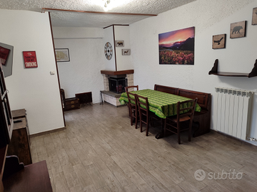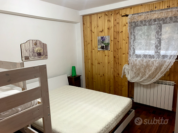 72 mq, doppio ingresso, ampio salone con angolo cottura e camino, Due grandi camere aventi ciascuna 4 posti letto, Due bagni di cui uno piccolo di servizio.