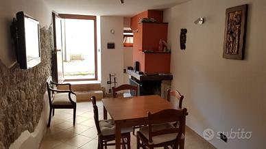 soluzione indipendente, circa 120 mq, nel centro storico di Ateleta (AQ), completamente ristrutturato, a circa 15 minuti dalla stazione sciistica di Roccaraso, composto da doppio ingresso, soggiorno con camino e divano letto matrimoniale, cucina, camera da pranzo, 2 camere da letto, 3 bagni, graziosa mansarda, terrazzo con tettoia in Legno, terreno pertinenziale di circa 370 mq, con posto auto pavimentato in pietra, termoautonomo."