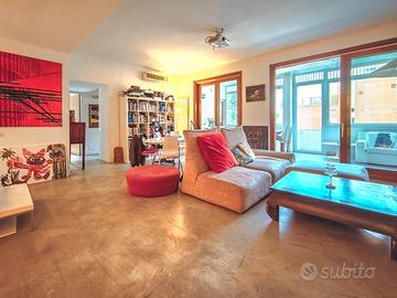 Nella prestigiosa cornice di Via Vallombrosa, all'interno dell'esclusivo Consorzio Cortina d'Ampezzo, proponiamo la vendita di un raffinato quadrilocale immerso nel verde. Situata al primo piano di un elegante stabile in cortina con servizio di portineria e area giochi condominiale, la proprietà si distingue per la tripla esposizione che garantisce una luminosità naturale in ogni momento della giornata. L'ingresso conduce a un'ampia e scenografica sala doppia, cuore pulsante della casa, caratterizzata da un funzionale angolo cucina con accesso diretto a un balcone di servizio. Il salone si apre su un incantevole terrazzo verandato che, attraverso pochi gradini, conduce a una seconda e ampia area esterna: un vero affaccio privilegiato con vista panoramica sulla Riserva Naturale dell'Insugherata. Il disimpegno, ottimizzato con armadi a muro e un pratico soppalco, introduce alla zona notte composta da due camere da letto, di cui una con accesso diretto al terrazzo e doppi servizi finestrati, finemente accessoriati con doccia e vasca idromassaggio. Oltre all'esclusivo appartamento proponiamo anche la possibilità di acquistare un comodo box auto finestrato, situato esattamente sotto l'appartamento e dotato di un soppalco con struttura in ferro di eccellente fattura e, oltre a questo, per chi necessitasse di ulteriore spazio, è disponibile anche un secondo box auto in locazione. Vivere in questo appartamento significa coniugare l'esclusività di un contesto silenzioso e riservato con la praticità urbana. La posizione è strategica: a pochi passi da scuole, parchi, mercati rionali e servizi essenziali, l'immobile rappresenta la sintesi perfetta tra il prestigio della natura incontaminata e i comfort della vita moderna. Richiesta: € 609.000, 00.