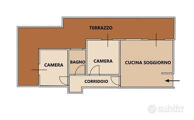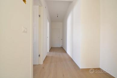 Soggiorno con angolo cottura all'ingresso, luminoso e funzionale, corridoio, due camere da letto, comode e ben distribuite, bagno moderno e rifinito.