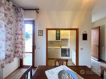 In zona centrale, comoda per raggiungere a piedi tutti i servizi e i negozi senza l'uso dell'auto, proponiamo in vendita un appartamento situato in una villetta quadrifamiliare di fine anni '70. L'immobile si distingue per l'assenza di spese condominiali e per l'ottimo stato di manutenzione generale (facciate interamente rifatte nel 2023). Descrizione dell'immobile: L'appartamento è posto al piano terra rialzato e gode di un ingresso indipendente direttamente dalla strada pubblica, tramite una corte di proprietà esclusiva. Internamente è così composto: o Ingresso su soggiorno-pranzo o Cucinotto separato. o Balcone esposto a Sud-Ovest, che garantisce ottima luminosità. o Ampia camera matrimoniale. o Seconda camera (ideale come studio o camera singola). o Bagno rinnovato recentemente. A completare la proprietà un comodo garage. Dettagli tecnici e finiture: o Riscaldamento autonomo a metano. o Nessun lavoro strutturale in previsione né difetti da segnalare. o Immobile "sano" e pronto, inserito in un contesto tranquillo e curato. Nota sulla consegna: L'immobile sarà disponibile per la consegna a estate 2026. Una soluzione ideale per chi cerca una casa definitiva e ha i tempi giusti per programmare l'acquisto con serenità. Per ulteriori informazioni o per concordare una visita, sono a vostra disposizione.