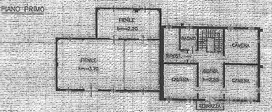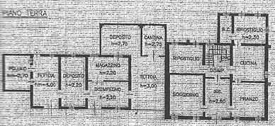 Piano terra: ingresso, sala da pranzo, cucina separata, ripostiglio, WC, soggiorno e un secondo ripostiglio.