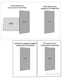 - abitazione duplex ai Piani secondo e terzo (con ingresso al piano terzo) con superficie lorda al piano secondo di mq. 46 e superficie lorda al
