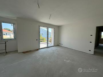 In residence di nuova costruzione APPARTAMENTO 2 CAMERE CON TERRAZZO ABITABILE. Complesso di sole 5 unità abitative sviluppato su 2 livelli fuori terra. L'appartamento, posizionato al primo ed ultimo piano, presenta ingresso su AMPIA E LUMINOSA ZONA LIVING con CUCINA IN OPENSPACE, servita da un comodo TERRAZZO. Proseguendo il disimpegno centrale si presentano UNA CAMERA MATRIMONIALE ed UNA CAMERA SINGOLA, servite da UN BAGNO COMPLETO FINESTRATO. L'immobile è dotato di GARAGE e POSTO AUTO. Soluzione introvabile per spazi, finiture e zona caratterizzata da tranquillità, molto verde e comodità ai principali servizi.
