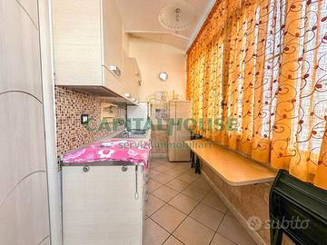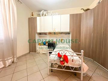 Veranda all ingresso di pertinenza con cucinotto , disimpegno che c'immette all interno della casa, salone-cucina ambiente ampio living, camera matrimoniale, cameretta e servizio con vasca. Possibilità di poter creare un'altra cameretta.