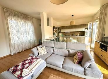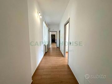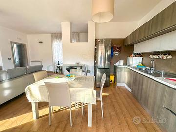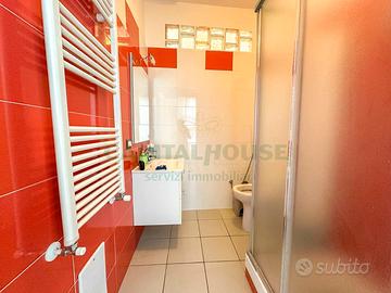 Nello specifico ha una metratura interna di c.ca 95mq con ambiente salone-cucina living, due camere da letto ampie, due bagni e cabina armadio ( sia un bagno che la cabina armadio hanno accesso diretto da una delle due camere da letto. )