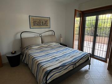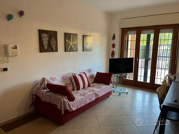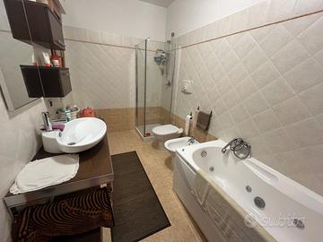 Immobile come nuovo mq 103 sito al piano terra con mq 50 di patio e un giardino pensile ,un box di mq 28 più posto auto davanti cancelletto di entrata al patio.L'appartamento é arredato con mobili di prestigio ed è composto di un salone con angolo cottura, 2 camere da letto di cui una con grande cabina armadio,un bagno con doccia e vasca idromassaggio.,un grande antibagno.climatizzatori Daikin,infissi in legno doppio vetro,zanzariere ,tende copertura patio, riscaldamento autonomo,box 28 mq,posto auto davanti casa.