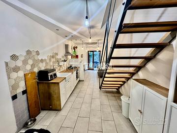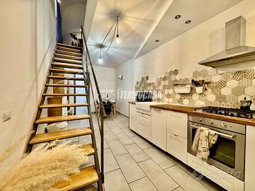 LIVELLO INFERIORE (Luce e Convivialità): L'ingresso dal terrazzo ti accoglie in una zona giorno living con cucina a vista. Un ambiente fluido, perfetto per chi ama cucinare e condividere. Completa il piano il primo bagno di servizio.