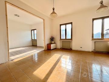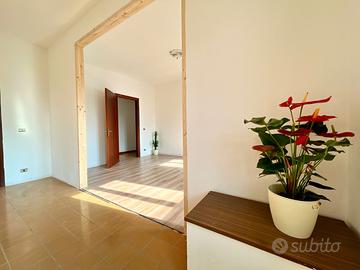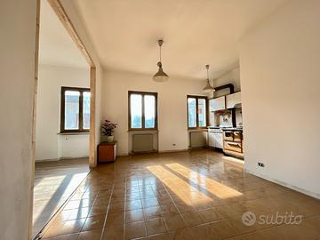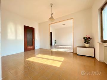L'appartamento si sviluppa al primo piano e l'ingresso al piano terra, indipendente, ne permette l'accesso. Un bell' atrio/corridoio ci conduce alla cucina abitabile che come tutta la zona giorno è orientata a sud e gode di una bella luce naturale. Il living è stato ampliato sfruttando quella che in origine era la terza camera (facilmente ripristinabile) ricavando un comodo soggiorno pavimentato in parquet prefinito.