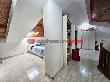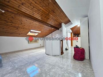 Professionecasa Paesi Etnei propone in vendita a San Nicolò, frazione di Aci Catena, in residence posto in zona servitissima nelle immediate vicinanze del parco comunale, luminoso appartamento di sei vani disposto su due livelli. L'immobile, della superficie di 160 mq, si trova al terzo piano ascensorato e si presenta in buone condizioni generali. Fornito di riscaldamento autonomo e di predisposizione per i climatizzatori, questo appartamento si presenta molto luminoso in quanto è dotato di doppia esposizione balconata. Internamente l'esavani è composto da: ingresso su ampio open space con annessa cucina soggiorno con angolo cottura realizzato in muratura, due camere da letto, bagno, ripostiglio e lavanderia con secondo servizio al primo livello; due vasti ambienti e bagno nel secondo livello mansardato, accessibile sia tramite corpo scala che tramite graziosa scala a chiocciola posta nel salone al piano inferiore. Classe energetica E.