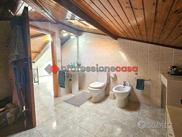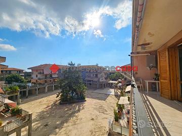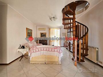 Professionecasa Paesi Etnei propone in vendita a San Nicolò, frazione di Aci Catena, in residence posto in zona servitissima nelle immediate vicinanze del parco comunale, luminoso appartamento di sei vani disposto su due livelli. L'immobile, della superficie di 160 mq, si trova al terzo piano ascensorato e si presenta in buone condizioni generali. Fornito di riscaldamento autonomo e di predisposizione per i climatizzatori, questo appartamento si presenta molto luminoso in quanto è dotato di doppia esposizione balconata. Internamente l'esavani è composto da: ingresso su ampio open space con annessa cucina soggiorno con angolo cottura realizzato in muratura, due camere da letto, bagno, ripostiglio e lavanderia con secondo servizio al primo livello; due vasti ambienti e bagno nel secondo livello mansardato, accessibile sia tramite corpo scala che tramite graziosa scala a chiocciola posta nel salone al piano inferiore. Classe energetica E.