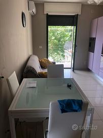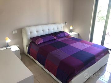 Splendido appartamento completamente nuovo con arredi nuovi. L'immobile è dotato di una camera da letto matrimoniale, una cameretta con letto a castello a 2 letti e una zona giorno/cucina con divano letto matrimoniale e un balcone di 9 mq. 65 mq) . Completamente climatizzato l'immobile è situato nei pressi di Piazza Arafat a San Salvo Marina. Distanza dal mare 850 mt .